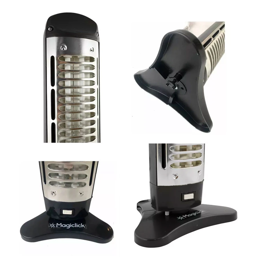 Este calefactor posee en su parte inferior un interruptor de seguridad que actúa cuando el mismo es volcado o levantado. Este dispositivo interrumpe el suministro de energía evitando riesgos de incendio o descarga eléctrica.m