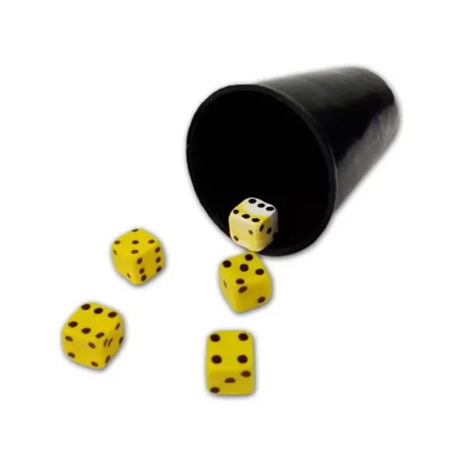 -INCLUYE 5 DADOS-CAJA PARA GUARDAR Y TRANSPORTAR-VASO PARA BATIR LOS DADOS