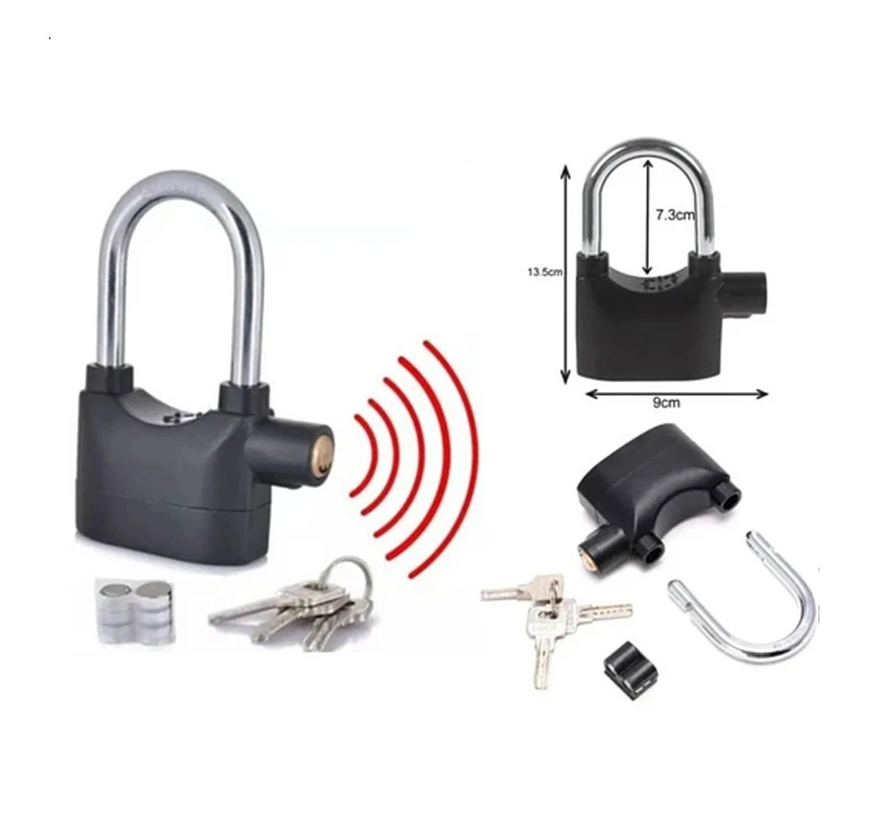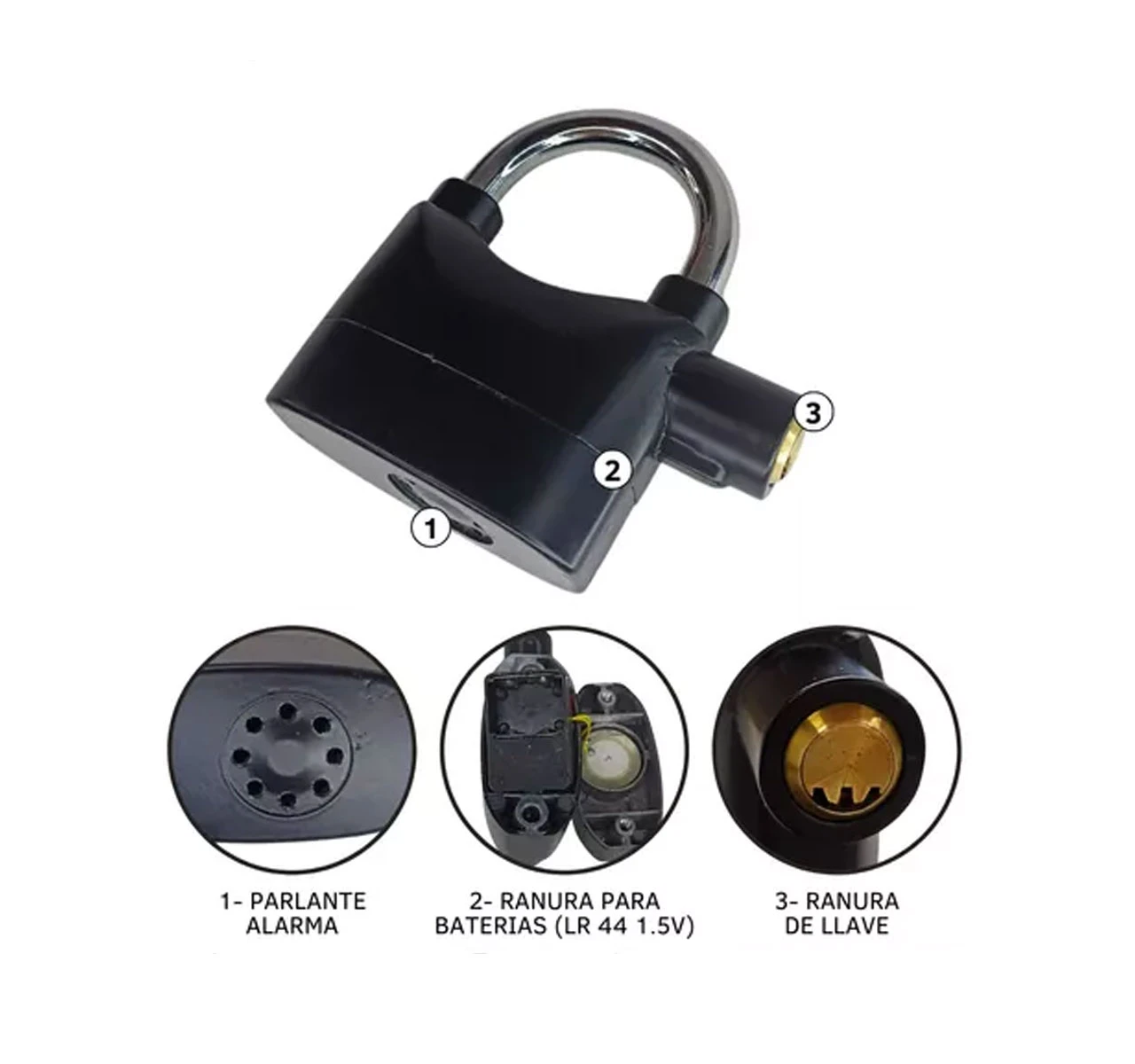 Candado con sirena de alarma a 110 decibeles.